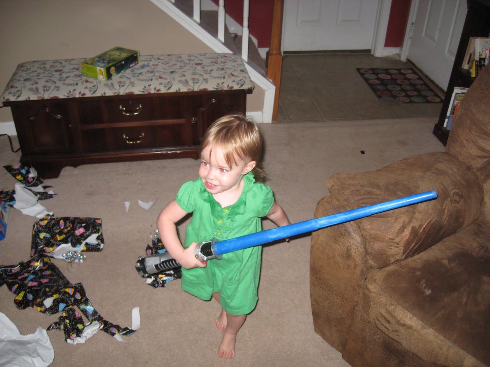 The best part was that the whole time she wielded her 'saber, she was making "whoom ... whoom" sounds. Such a sweet sound to our nerdy ears.